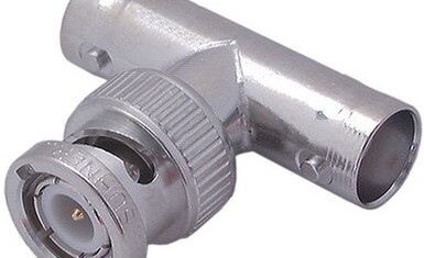 A range of 50 and 75 Ohm BNC RF coaxial adapters with a variety of configurations including BNC plug to BNC plug, BNC jack to BNC jack and BNC plug to BNC jack with straight, elbow and 'T' orientations and bulkhead mount options.