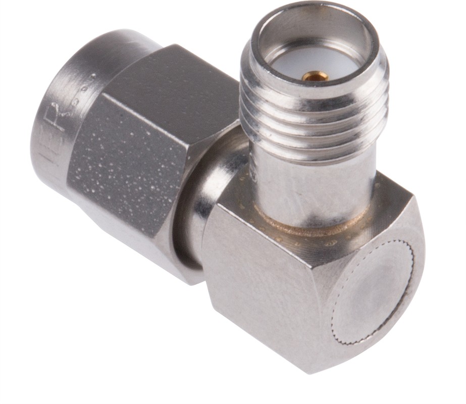 The 53_SMA-50-0-51/199_NE is a RF/Coaxial Right-angle Adapter with SMA plug to SMA jack connection.The SMA plug has a PFA/PTFE insulator, Passivated plated stainless steel body and gold-plated copper beryllium alloy centre contact. The SMA jack has a PFA/PTFE insulator, passivated plated stainless steel body and gold-plated copper beryllium alloy centre contact.