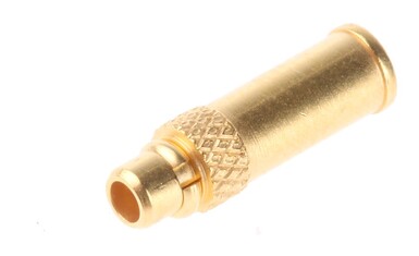 The Huber & Suhner Coaxial PCB Connector is a edge mount PCB jack with brass body material for test and measurement applications.