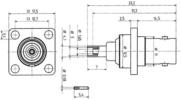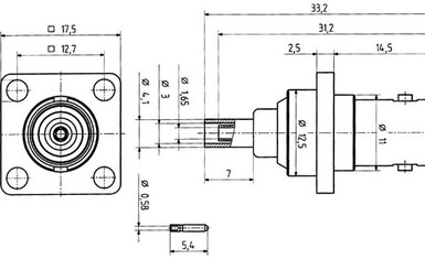 BNC разъем на панель для монтажа на кабель способом обжима. Корпус разъема выполнен из меди, диапазон рабочих температур от -65 до +165С. Разъемы можно монтировать на кабели типа RG-316-/U, ENVIROFLEX-316, RG-188-A/U, RG-174-/U.