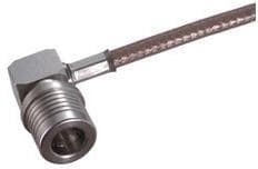 16_QMA-50-2-2/133_NE, QMA Connector Plug, Male Pin 50 Ohms Free Hanging (In-Line), Right Angle Solder