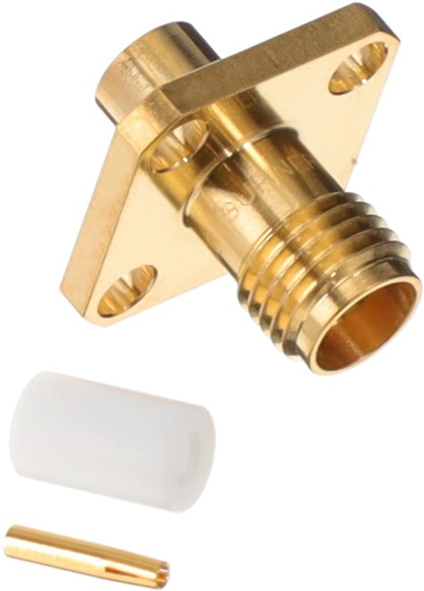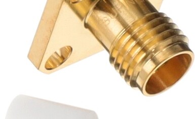 The Huber & Suhner SMA Straight panel cable jack with flange mount is made of Copper Beryllium Alloy contact material.